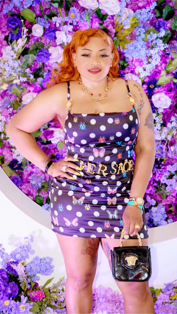Designer silk dress great quality very classy fit true to size has alittle stretch