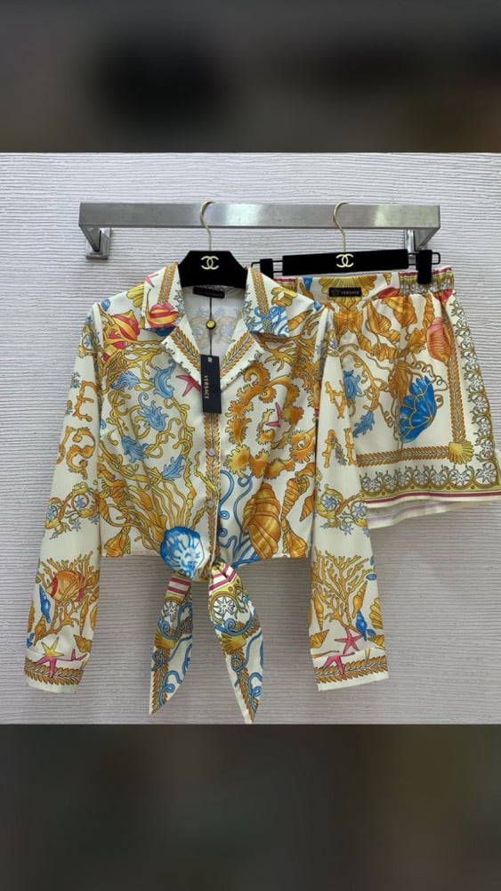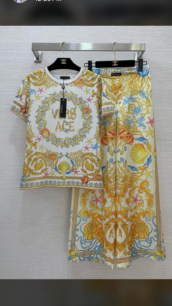 Summer pop off shorts set & pants set Versace logos fit true to size has stretch great material very fabulous sets model wearing medium